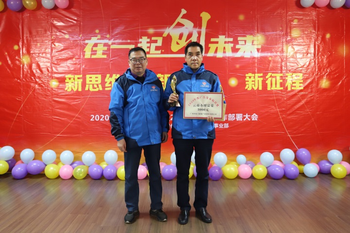 董事长周子云先生对获奖同事表示祝贺,并对2020年大家付出的努力表示肯定,那些艰难的日子,非但没能摧折我们,反而磨砺了我们。周董表示新的一年全公司以营销为龙头,以创效益为目的。全面做好营销工作,全体员工共同努力取得更大成绩!